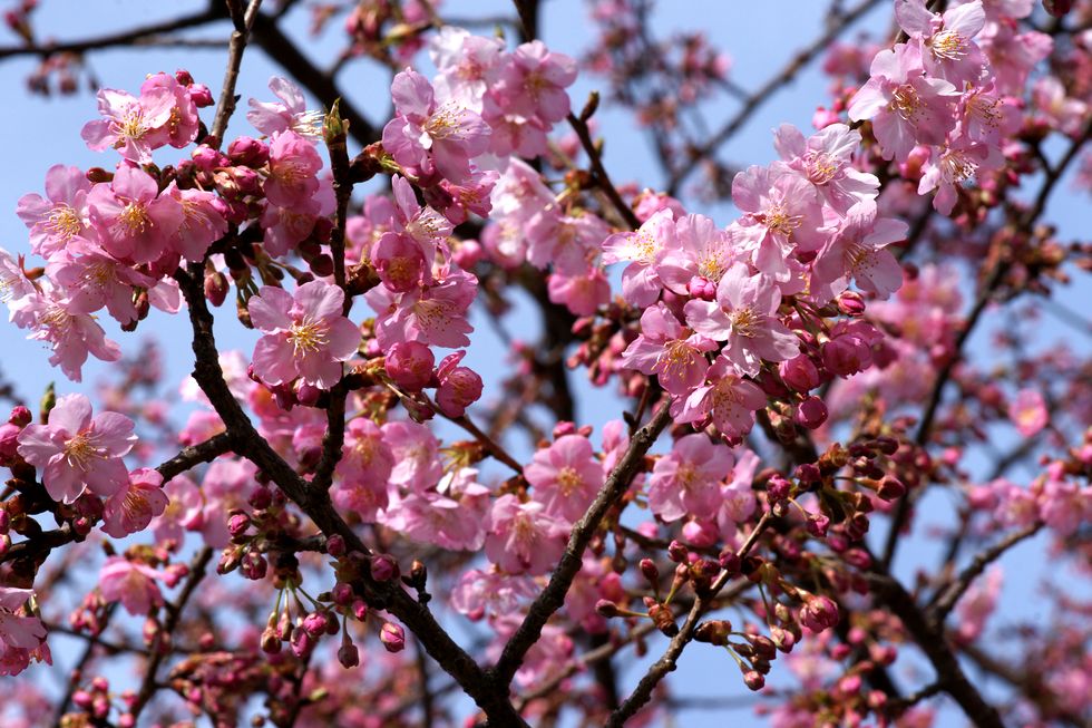 長久保公園の河津桜車用の入口横の桜だけは河津桜なのでほぼ満開になっている、他の桜(彼岸桜やソメイヨシノなど)はまだ蕾が堅い状態。 |