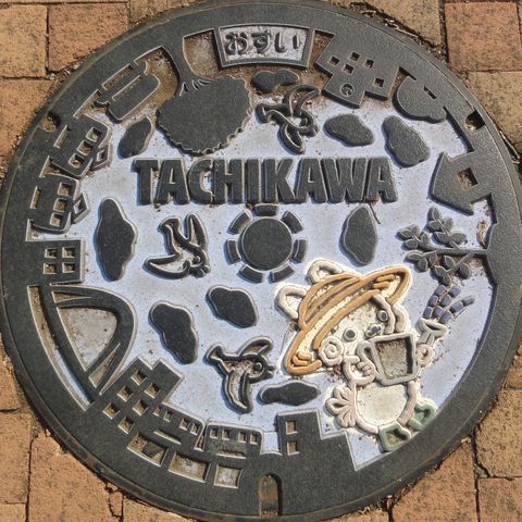 立川、新しいマンホールはアルプス・プラザ前これ信濃大町のアンテナショップのよう。この近くのアパートに次女がしばらく住んでいたので何度か行った。 このマンホールの図柄は以前入手のカードのもの。 |