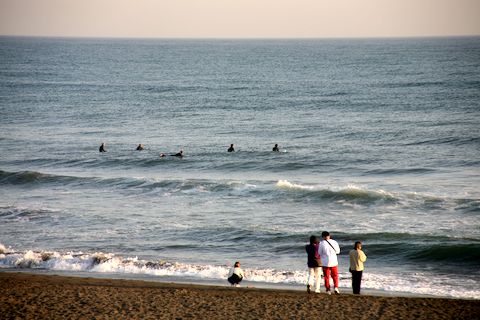 春の海岸風景に海岸では水ぬるむ春を感じる子供たちの波打ち際での水遊びの光景も見られた。波はほとんど無く静かな海でサーファーは数人のみ。 公園前の飲食店はけばけばしい色、右手の何軒かが空地になって久しい。 今日のカメラ:SONY α900+TAMRON:28-200mmZoom。 |