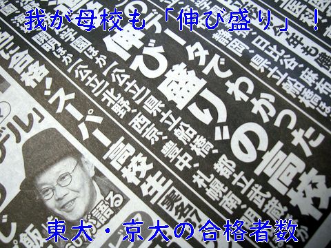 頑張る母校:大学合格実績今年の国公立大学の合格発表が続き、その結果が話題に。わが母校は京大・東大への合格者増で頑張る高校だとか。 今は学年定員が320人と一時(55人*13クラス)の半分以下、名古屋大への60-70人合格は立派なもの(1967年は200人超)。 卒業生にはノーベル物理学賞を2008年に受賞した小林誠さんもいる。 |