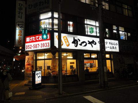 夕食は「かつや」でロースかつ定食栄の展望回廊で夕暮れの風景を撮影後、地下鉄で名古屋駅へ。都地下街のはずれから近い「かつや」へ、直ぐ向かいは柳橋中央市場。 |