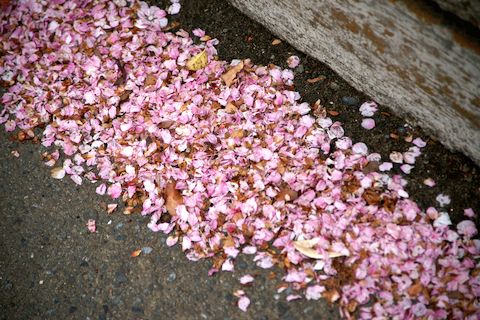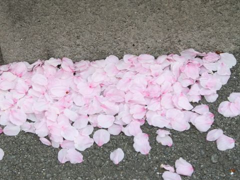 春の嵐で桜散る前線の通過で午後から強風、夕方からは小雨、早く咲いた桜はもう散り始めた。 |