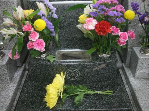 墓参りに朝9時半に家を出て墓参りに、寒さが続いたせいか花が殆ど傷まずに半分以上も残っていた。 |
