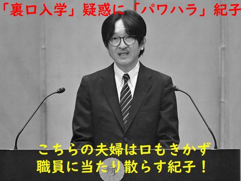 何をか況や?の紀子「私が嫌われ役を担う」などと言って税金で派遣された公務員を「パワハラ」でいじめて脱落者が多数、一体何を考えているのか?大いに勘違いしてるだけ? 「裏口入学」ばかりで息子の東大卒を狙うという浅墓さ。秋篠宮とは家庭内会話も無く、この時代に車で伊勢神宮参拝だと。 ニューヨークへ逃げた長女も在住日本人にお世話になったのに、不義理ばかりで人気凋落との報道もあるが。 |