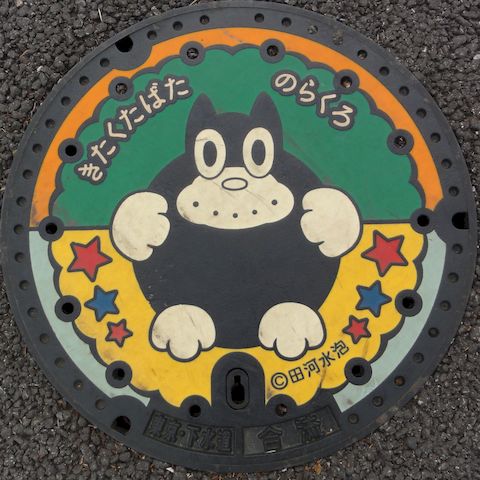 北区田端「のらくろ」配布場所は田端駅前の田端文士記念館(入場無料)、マンホールは北へ行った小学校の角にあった。 |