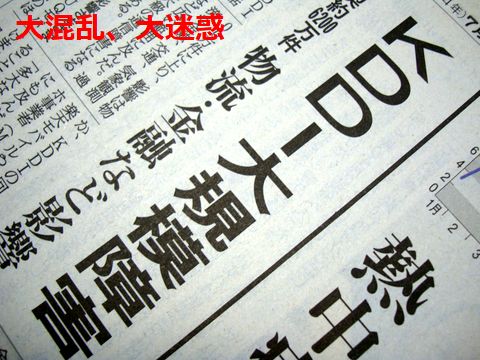 KDDIの障害、完全復旧は未だ機器メンテの設定ミスで問題発生、元に戻すが溜まったトラフィックであちこちでパンク状態になって全体がダウンに近い状態に陥った。 昨年のドコモのトラブル、銀行オンラインのトラブルに似たものが目立つがまた再発する可能性大。 |