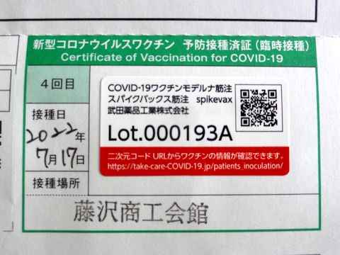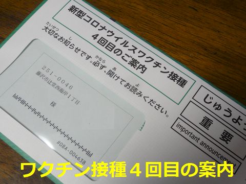 ワクチン4回目接種へ3回目接種から今日でちょうど5か月、藤沢駅前の商工会館での接種を予約して出かけた。 |
