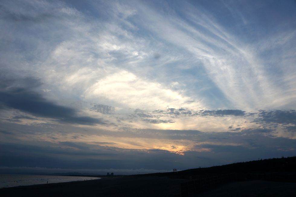 夕焼けの空がきれい久しぶりに夕方の波打ち際を散歩、日曜日で好天だったのでまだ人が残っている、空は赤く焼けて雲が久しぶりにきれい。 今日のお散歩カメラ:SONY DSC-HX5V(28-280mm相当Zoom) |