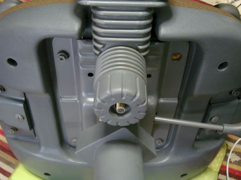 椅子のガスシリンダ交換は失敗ずいぶん前に購入のガスシリンダを交換しようと椅子の座面を外す、でもシリンダは硬くて外れずで断念。 この椅子は2013年にヤフオクで買った中古、倒産した大阪のチトセというメーカのもの。 |