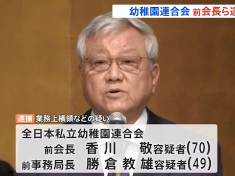 今度は私立幼稚園連合会で使い込み上納金を集めて自分たちが勝手に使い使途不明金だらけ、経理はごまかしのインチキ放題。この御仁は山口県の公安委員長だったというから唖然とするしっかない。 山口県はアホノミクスの安倍を輩出した民度の低い県?だから当然? |