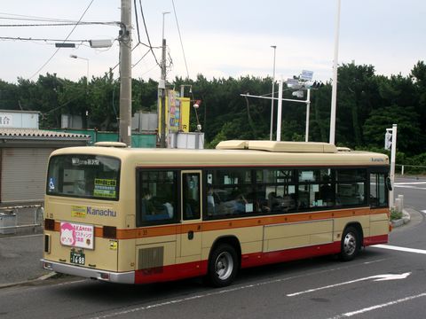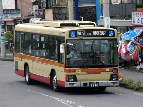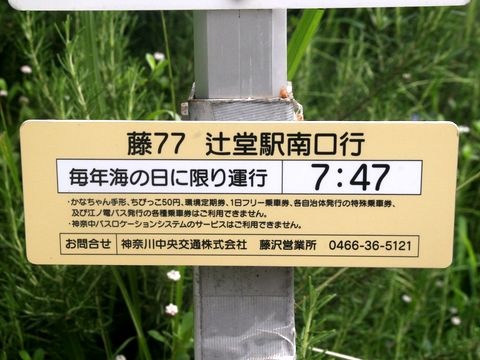年1日しか走らないバスこの神奈中の「藤77」系統は海岸道路の渋滞で運休になって久しいが「海の日」だけ復活する、藤沢>江の島島内>辻堂の往復路線。 |