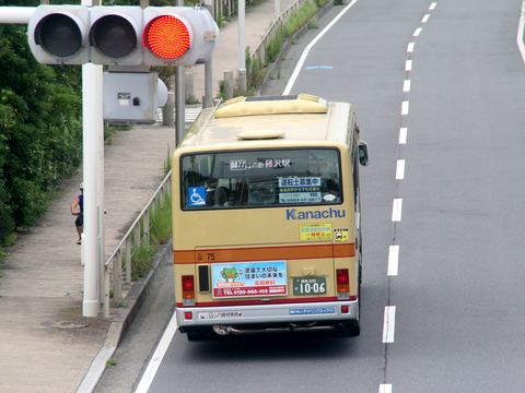 あれ、もう一台来た最初のバスが行ってしばらくするとまた同じ「藤77」藤沢行がやってきた。どうやら2台での運行のよう、 どちらのバスも座席はほぼ一杯という感じ。 |