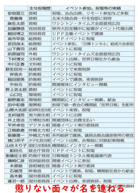 利用したつもりで利用されている政治家達献金や選挙応援で与野党の多くの議員に恩を売って教団が追及されるのを防止するという構造が見える。教団の名称変更にも怪しい影あり。 韓国では集金は限定的、「慰安婦」「徴用工」で散々悪口を言っているが日本国内では集金ビジネス優先。 |