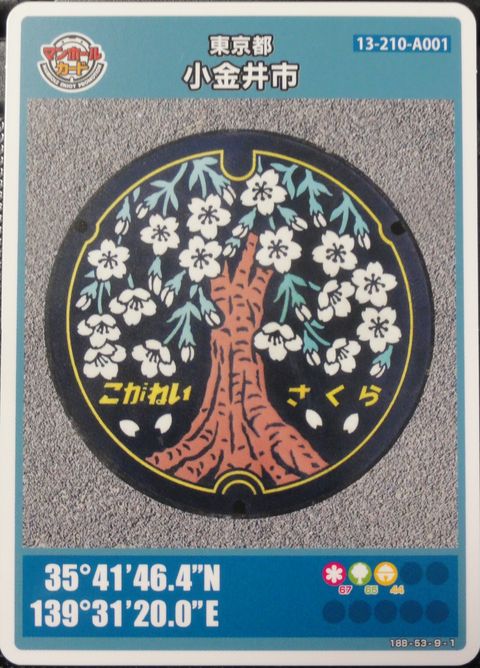 もう一枚は配布終了、残念JR駅前にあるマンホール、このカードは小金井商工会で配布だが配布終了。 |