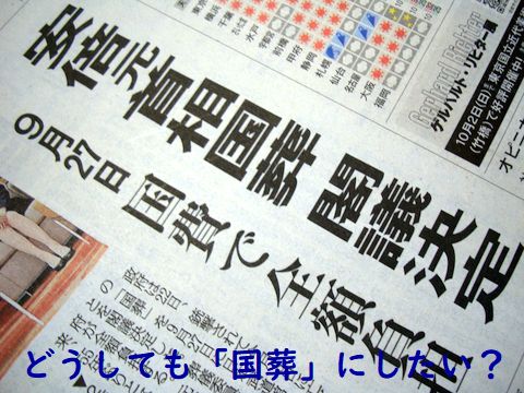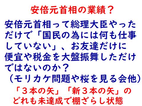 本当に「安倍」は国葬に値するのか?首相在位期間だけ長いが、打ち上げた政策や看板はどれも目標未達か棚ざらしの状態。 結局、このアベはオトモダチに便宜を図り権益をバラまいたが、国民には一体何の業績があるのか? 全く解らないまま「国葬」にするのだと、むしろ「酷葬」が似つかわしい? |