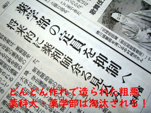 薬学部はこれから冬の時代に?増やせ増やせで薬学部を作ってきたが底辺大学では国家試験の合格率は成績不良者の足切りをしても低い という悲惨な状況、これからは就職難の時代になる?人口減少に何も有効な対策を打てなかった「偉大な」首相のおかげ。 |