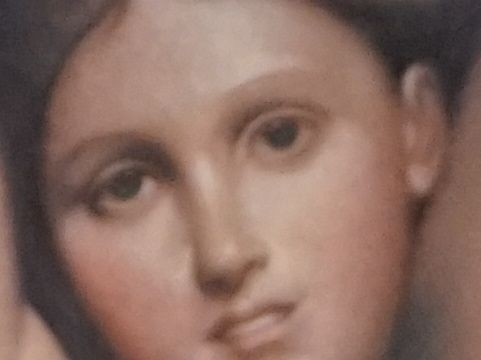 TAMRON広角ズームは善戦こちらの2枚は後半で通常サイズの絵画を撮影するのに使ったSONYのSAL2875SAM+LA-EA3で撮影したもの(当然ながらフルサイズ撮影)。 レンズがやや明るいがあまり画質?に差がないという印象、、油絵なのでシャープさが際立たないのも原因? 上はダ・ヴィンチ「白貂を抱く女」、下はアングル「泉」。 |