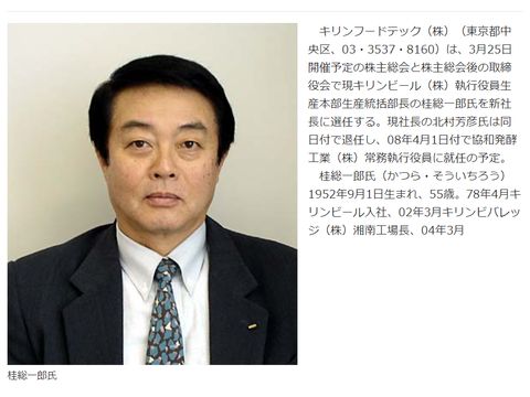 桂氏の検索結果:もうリタイアかなキリンビバレッジ湘南工場長やキリンビールの名古屋工場長を経て、キリン・フードテックの社長。慶応ビジネススクールの時も当時のキリンの トップの高シェアに慣れた危機感の欠如を盛んに嘆いていた。その後、アサヒビールにトップの座を奪われ危惧は現実に、彼の当時の活躍が想像できる。 |