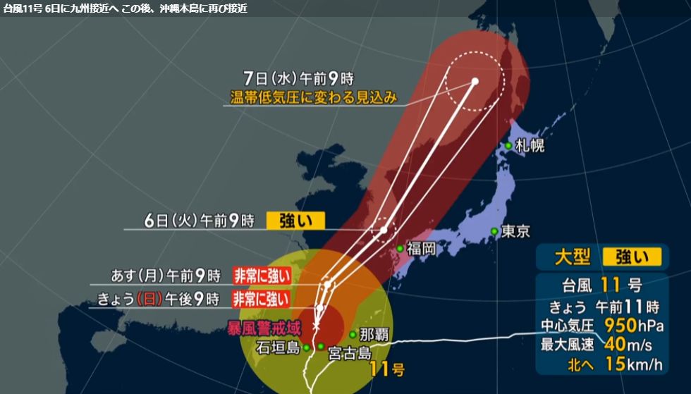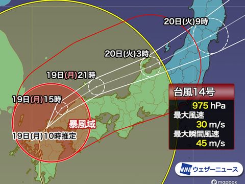 台風14号接近で強い雨と風3連休の台風、九州へ上陸し北上した14号は九州を抜けて日本海へ、まだ遠く離れているが、強い雨と風が間歇的にやってくる。 雨の降らない合間の夕方の散歩は短めにした。 |