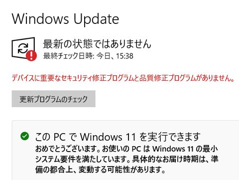 Windows11のインストールは中止インストール中に88%で何故か停止状態?ネットで調べるとよくある事らしい。 そのため、Windows11のインストールは取りやめ、その後WindowsUpdateが2件あり実施。 |