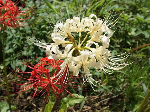 長久保公園では彼岸花も少しだけだが白と赤の彼岸花もあった。小出川の彼岸花まつりは今週末だが天気が悪そう。 |