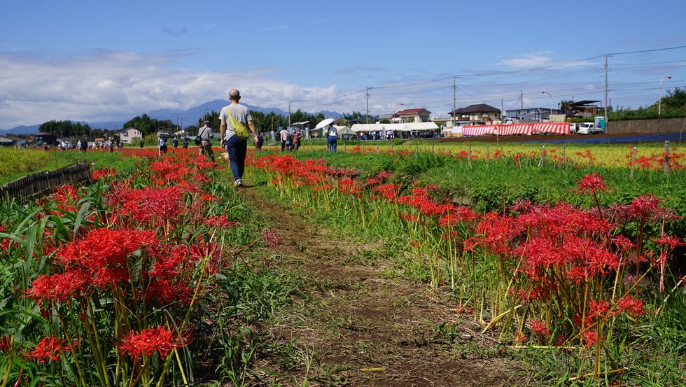 小出川・彼岸花まつり雨で延期になった彼岸花まつり、好天にも恵まれて人出多数。小田急線から来る人はバスが慶応大までしか来ないので 結構歩いてのアクセスになっていた(土曜ら終点の中高降車場から歩くと近い)。 |