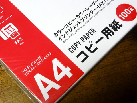 A4印刷用紙を購入以前買った500枚をついに使い切ったので、ダイソーで100枚110円を購入してきた。 |