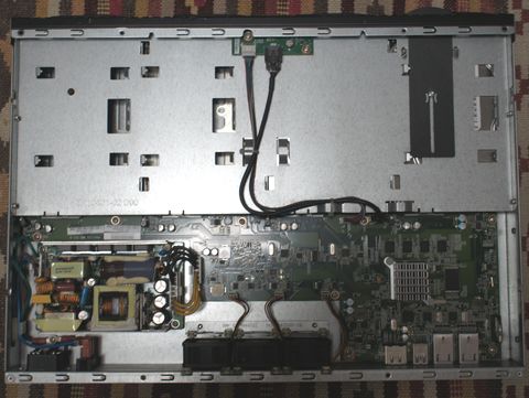 NAS内部のチェック・観察さすが一流メーカ品でしっかりとした造りで精度も良好、電源ユニットはカバー無し・ファン無し。 HDDトレーの表示LEDは基板部からトレー側面にある光ガイドで表面まで持っていっている構造だった。 |
