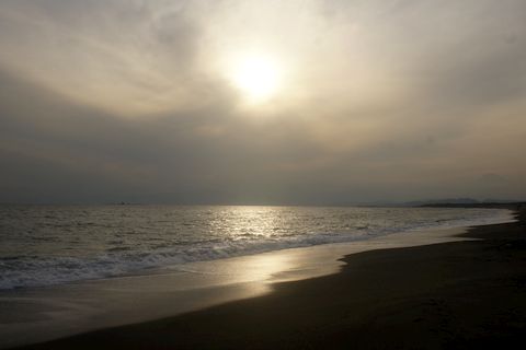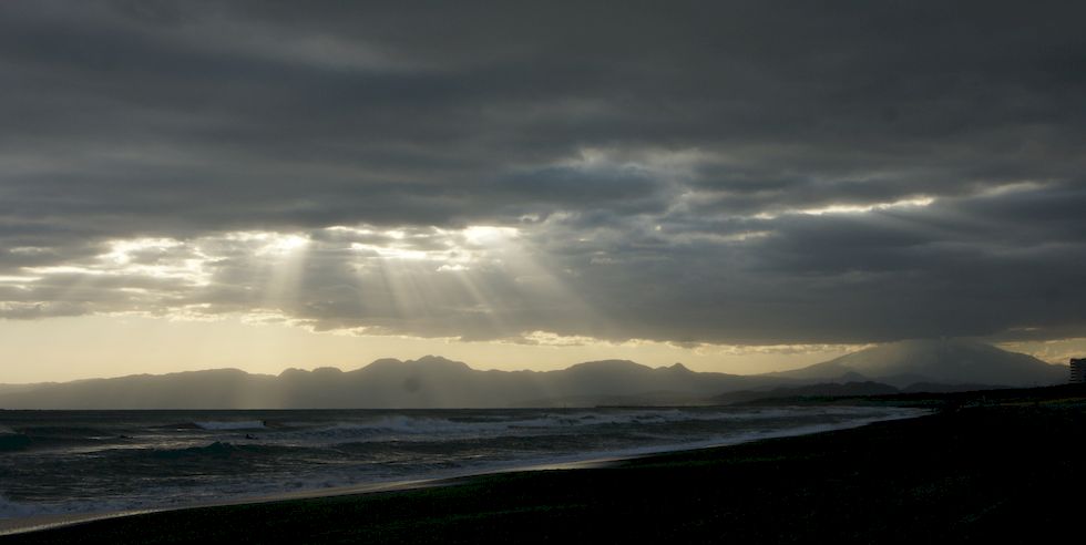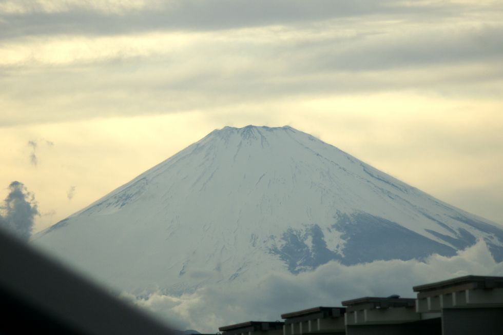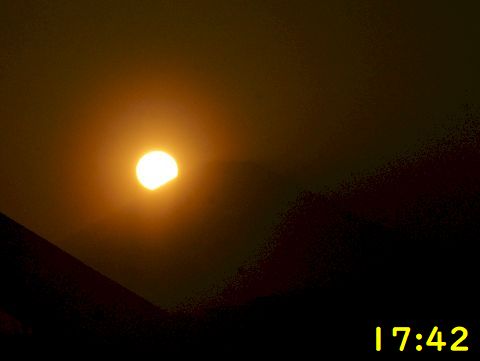 ダイヤモンド富士は明日?明後日?まだ南斜面に沈んでゆくが明日か明後日には山頂付近に沈むだろうが、問題は天気。 |