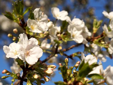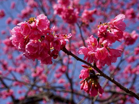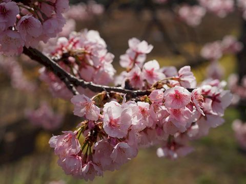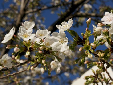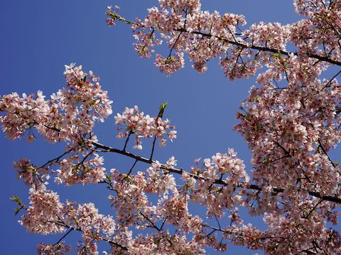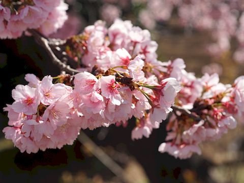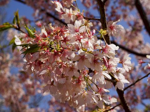 色々な桜がほぼ満開に染井吉野はないが大寒桜、寒緋桜、春めく、おかめ桜、玉繩桜など色々な種類の花が観賞できる。 |
