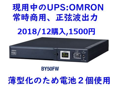 候補としている台湾製UPSOMRONのMY50Sも候補だが、台湾メーカ製でもっと安いものもある。両方ともシャットダウンソフトが入手可能で有ることも確認。 昔、現役時代に台湾メーカら小型UPSのOEM調達をした(実際は製品審査の担当をしたのだが)経験から大丈夫だと思われる。共にヤフオクで現在1000円+送料。 |