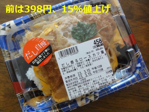 値上げが続々と今日から江ノ電バスが値上げ(約10%)、西友の弁当も15%値上げ、すき屋の鳥そぼろ丼も10%以上の値上げになった。 4月から政府売り渡しの小麦も値上げ、全部上げると国民の反発が怖いと半分は税金で補填して国民を騙す(税金で払うので 目先の誤魔化し)。 |