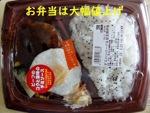 西友の弁当は大幅値上げに従来は税抜きで298円という弁当があったのだが、今は何と398円に大幅値上げになっていた。 今日のお散歩カメラ:CANON EOS30D+TAMRON 18-200mm Zoom |