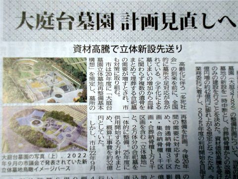 大庭台霊園の増設工事見送りにもう満杯に近づいている立体墓地の増設工事が建材費の高騰で見合わせに。 |