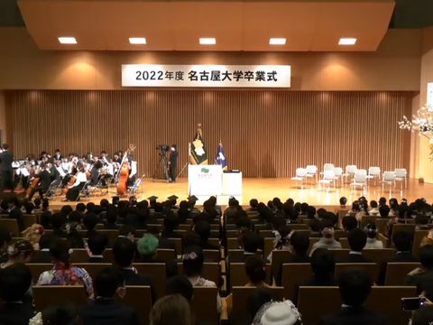 名古屋大の卒業式学生数が多く、会場は狭いので3回に分けて開催。。 |