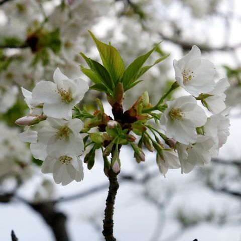 玉縄桜はもうほぼ葉桜にここ大船で生まれた玉繩桜はピークが1週間前のよう、殆どの木が葉桜になっていた、残念。 |