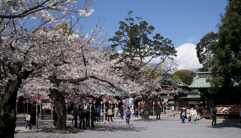 三島大社の桜・枝垂れ桜も帰路、三島で途中下車して三島大社の桜を見てきた、枝垂れ桜も満開。。 |