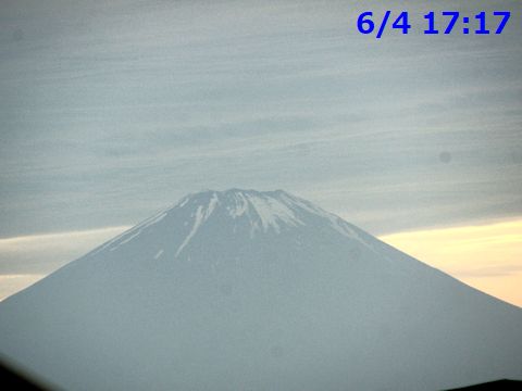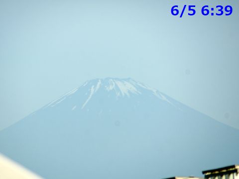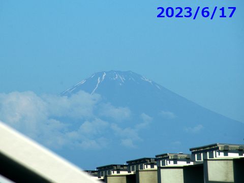 富士山も夏姿に気温が高くなって富士山は霞んでしまっている時が多いが、早朝などではまだ綺麗に見える。山頂部の雪はほとんど消えている。 |