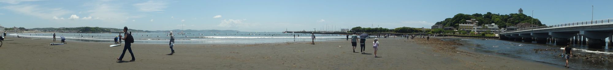 江の島のトンボロ、再チャレンジ前回のリベンジで江の島へ、往路は歩き。片瀬東浜へ着いたら、もうトンボロで歩ける状態になっていて 多くの人が向かい岸へ歩いて渡っていた。 |