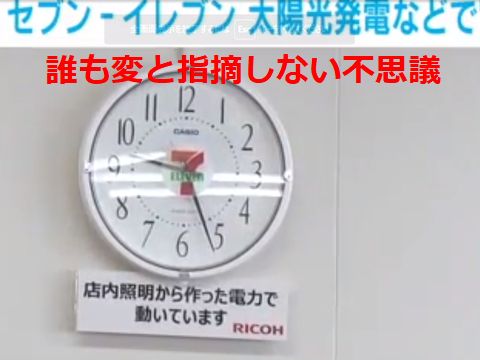 セブンイレブン、誰も変と思わない不思議新店舗のお披露目で店内に太陽光パネルを設置とアピール、でも発電量は壁掛けの時計程度しかないという。 乾電池1個分の発電のため、どれだけ電気を使って太陽光パネルを製造したかを全く考慮しないピント外れの アピールに呆れるしかない。こんな内容を変だと指摘するひともいないお寒いセブンイレブン! |