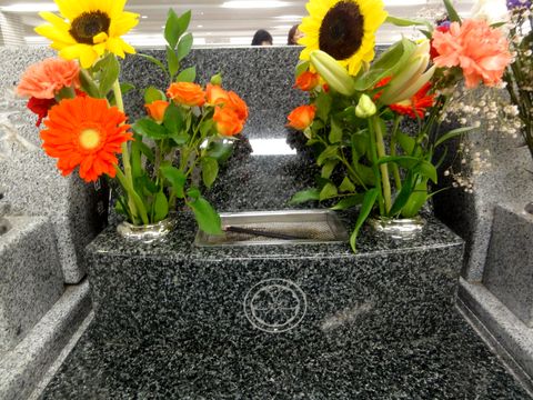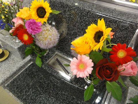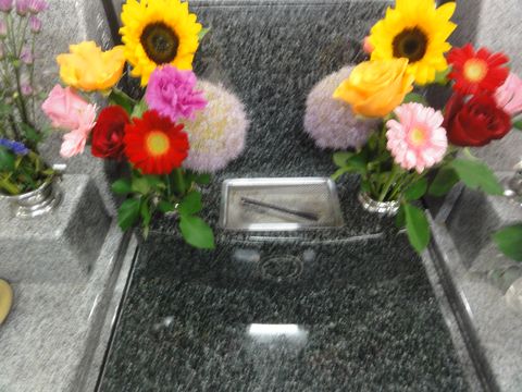 墓参りに・漂白剤で水腐敗止め2週間前の花は全て無くなっていた(係員が撤去)、今回から水に漂白剤を入れて腐敗防止をすることに したが水が無くなっては意味がないが(冬は乾燥で水切れ、夏は乾燥と腐敗)。 |
