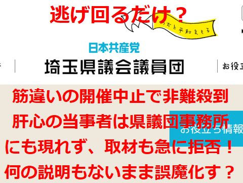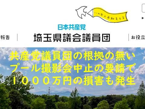ピント外れの共産県議の抗議で大混乱状況や規則も熟知しないまま「女性蔑視」という視点だけで「撮影会中止」を求めた県議。 ルールも良く確認せず「中止」させ、県知事の指示で一部撤回し大混乱。直前中止での賠償 問題も発生、県民の税金で賠償するというトンデモない可能性も出てきた。 |