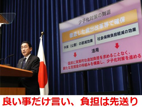 都合の悪いことは先送りの岸田、妄言の森選挙を睨んで国民に受けの悪い事は明言せず先送り(給付ばかり言い、負担はムニャムニャ、扶養控除廃止 や退職金への課税など)の岸田、妄言連発の森のお粗末はまた受狙いで女性蔑視の発言(ほぼ確信犯)。 |