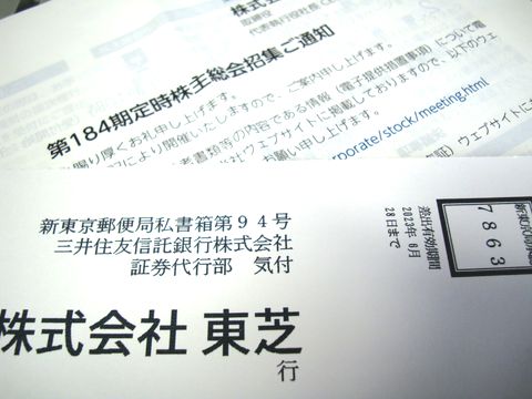 株価高騰に無縁の東芝株主総会の案内にTOB元のメッセージが同封、買取価格は市場の株価高騰には無縁の状態。 総会決議への賛否(取締役選任のみ)には除外対象を記述して賛成の投票をした、これが最後の総会かも。 |