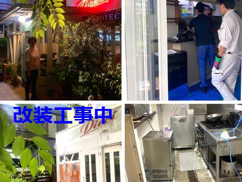 近所のイタリアンのお店、改装中2001年開店なのでもう22年経過したのか。改装工事で玄関の仮設テラス席部分が撤去されている。 |