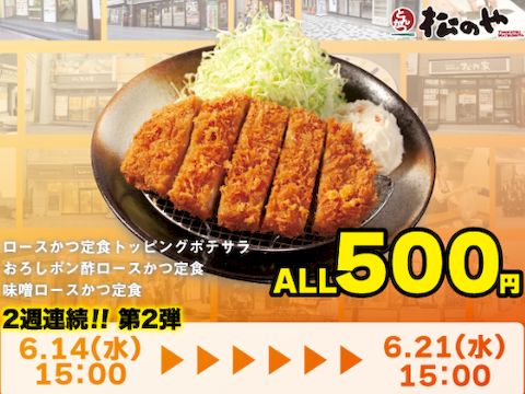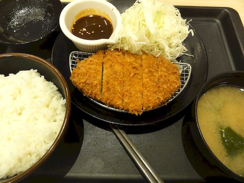 松の屋の味噌カツ定食限定セールで500円と格安、でも肉がいつもより小さい感じがしたが。 |