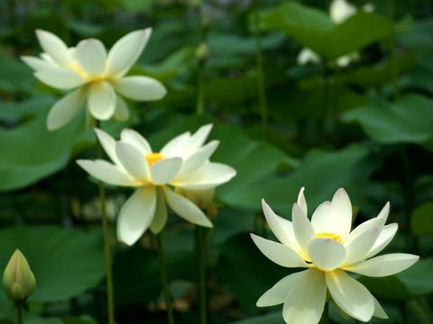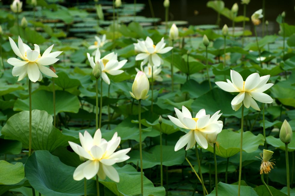 第2池は白い蓮で花盛り第2池は白い蓮が例年並みに咲いている感じだが、それでも少な目かもしれない。 |