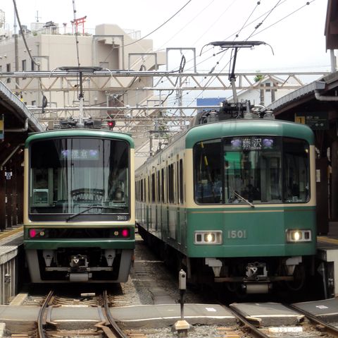 江ノ電と紫陽花蓮池を見た後、近くの石上駅近くまで移動し沿線の紫陽花と江ノ電を撮影。もう紫陽花はピークを過ぎて寂しい状態。 |