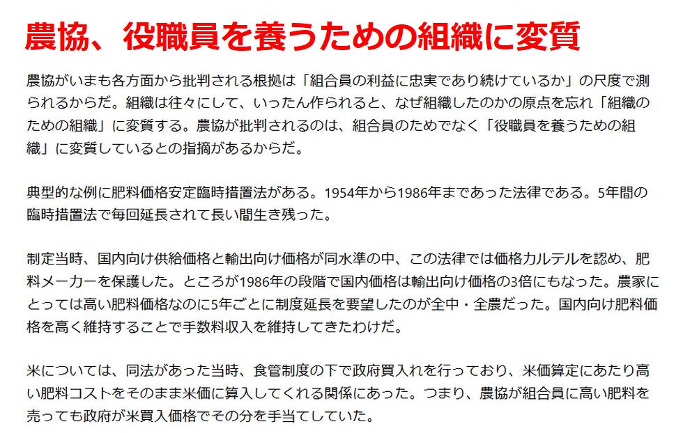 誰のための農協・漁協か?「全量買い取り契約」を強制という実態、要は自分たちで流通を独占し儲けるという発想。 買いたたかれる漁民の為にやったと言い訳をしているが、「買いたたき」は独占買い付けで漁協もやっているのでは、と疑問。 まったく「農協・漁協のための組織」に他ならない。 |