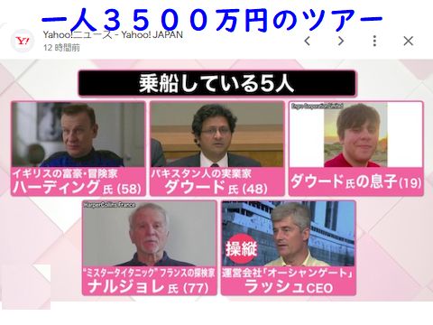 潜水艇タイタンは圧力で破壊?報道ではタイタニック号から500m位離れた場所で破片が発見されたとある、380気圧という圧力で破壊されたものと思われ 5人全員死亡と判断。技術協力をしたとされたNASAもボーイングも否定しており大噓つきだった可能性も。 それにしても貧しい国パキスタンでも「大富豪」がいるとは驚き、富の偏りが極端になっている。 |